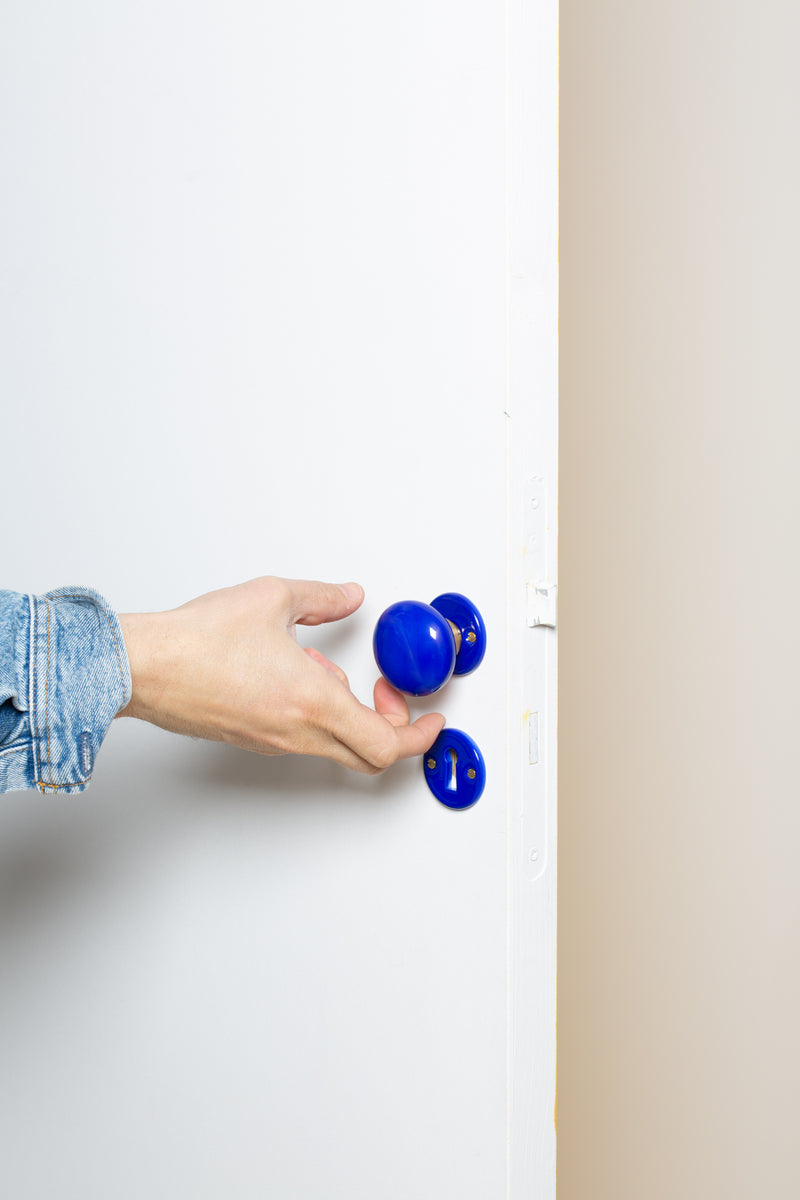 Bouton de porte ovale en porcelaine bleu vif