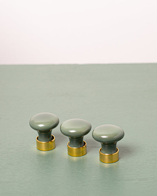 Bouton de meuble en porcelaine Vert Kaki
