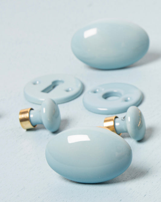 Bouton de porte ovale en porcelaine Bleu Spa