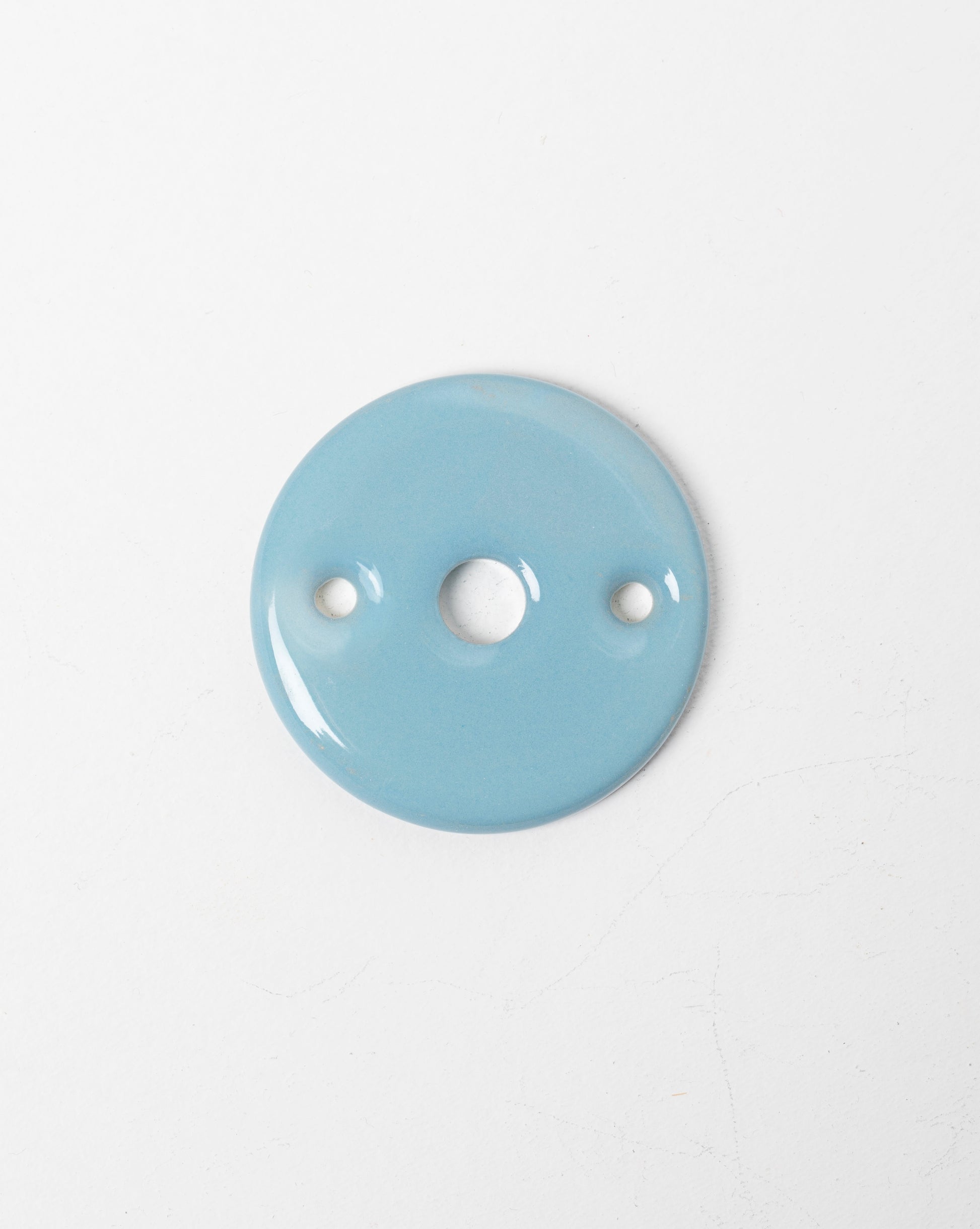 Rosace de porte avec fermeture en porcelaine de Limoges bleu pastel issu de la palette exclusive de la marque de peinture Peintagone avec qui Hello Jacques signe sa première collaboration (bleu spa PE075).