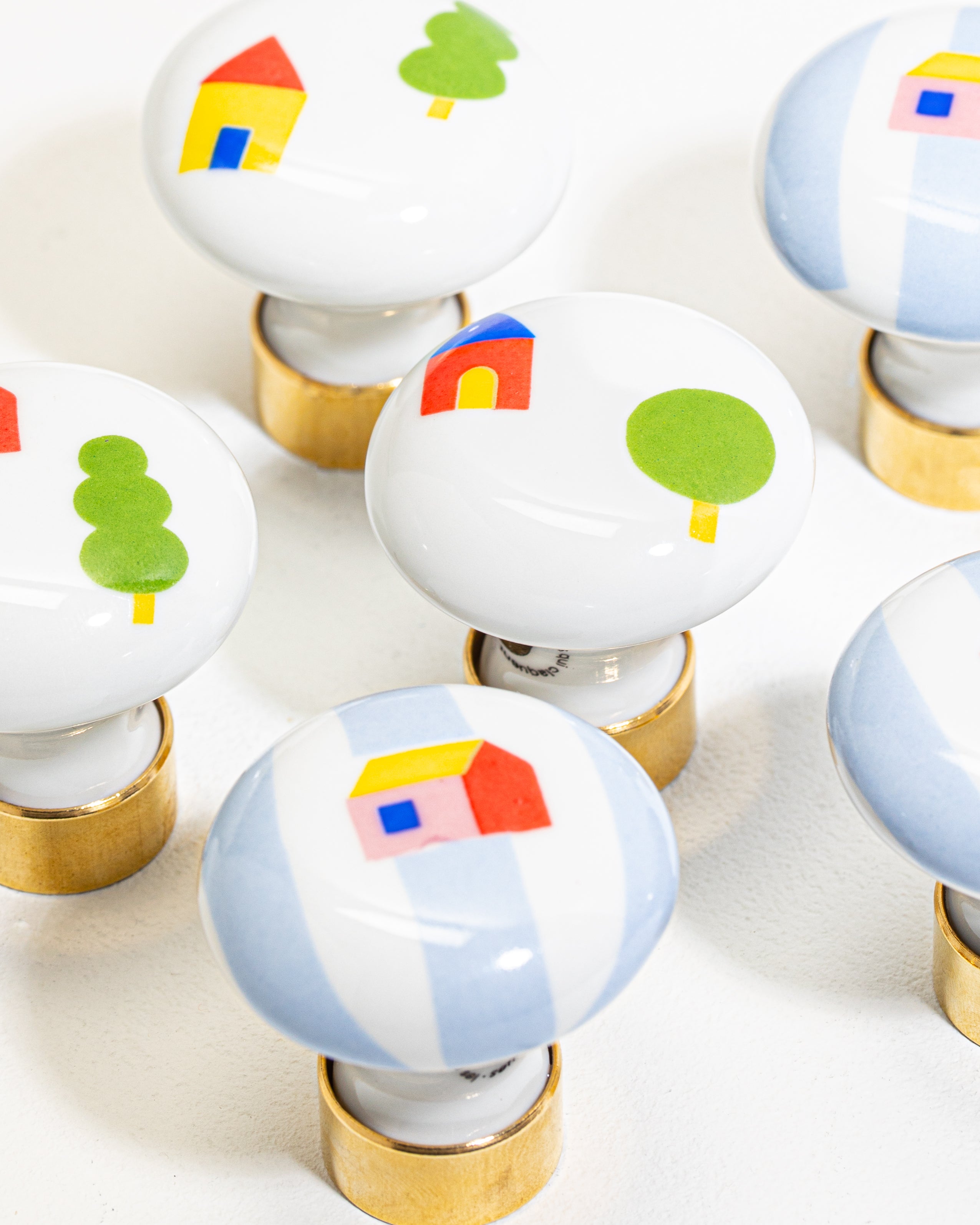 Le bouton de meuble en porcelaine de Limoges, fabriqué et décoré à la main, imaginé en exclusivité pour le pop-up La chambre d’enfant chez Chœur Cœur.