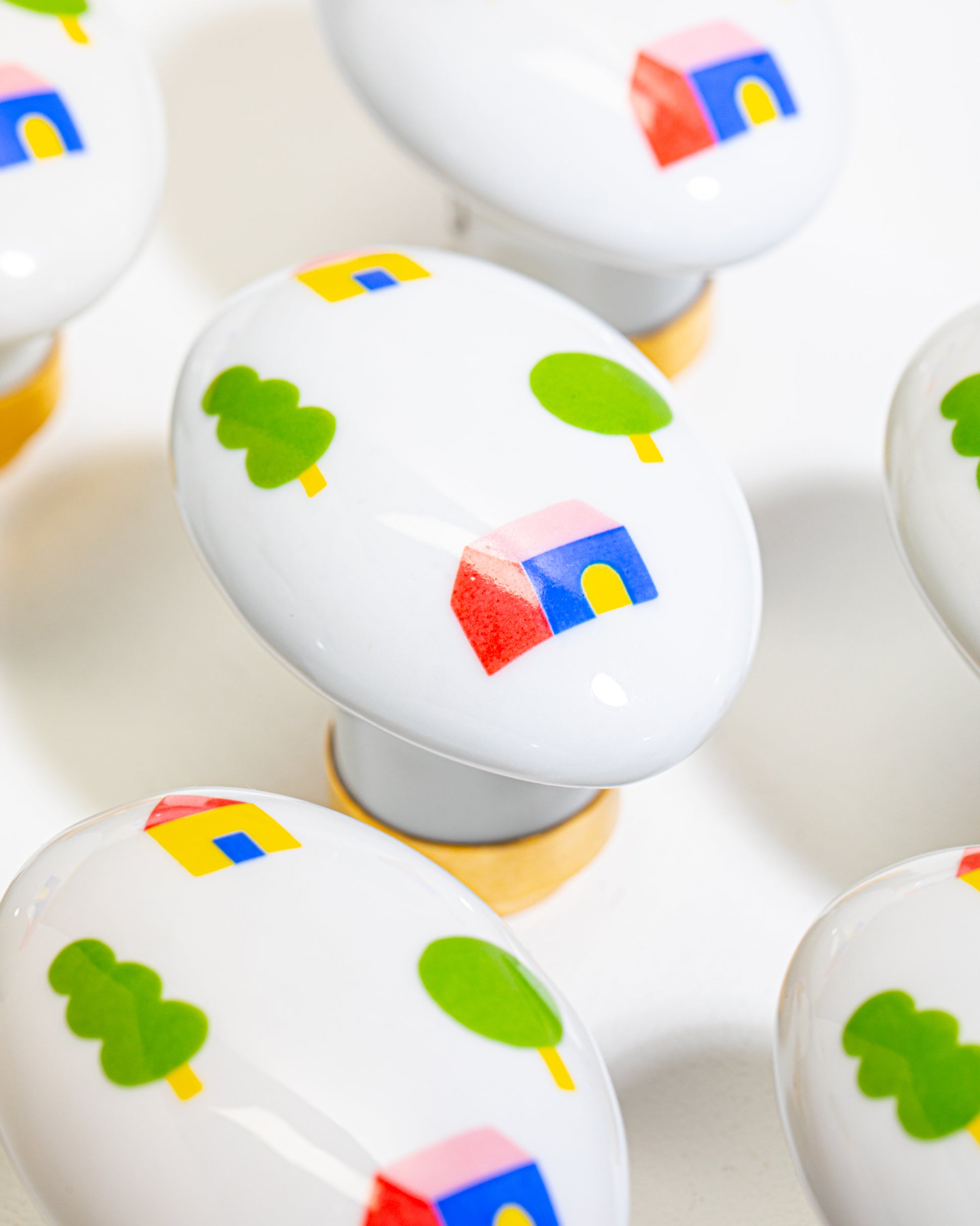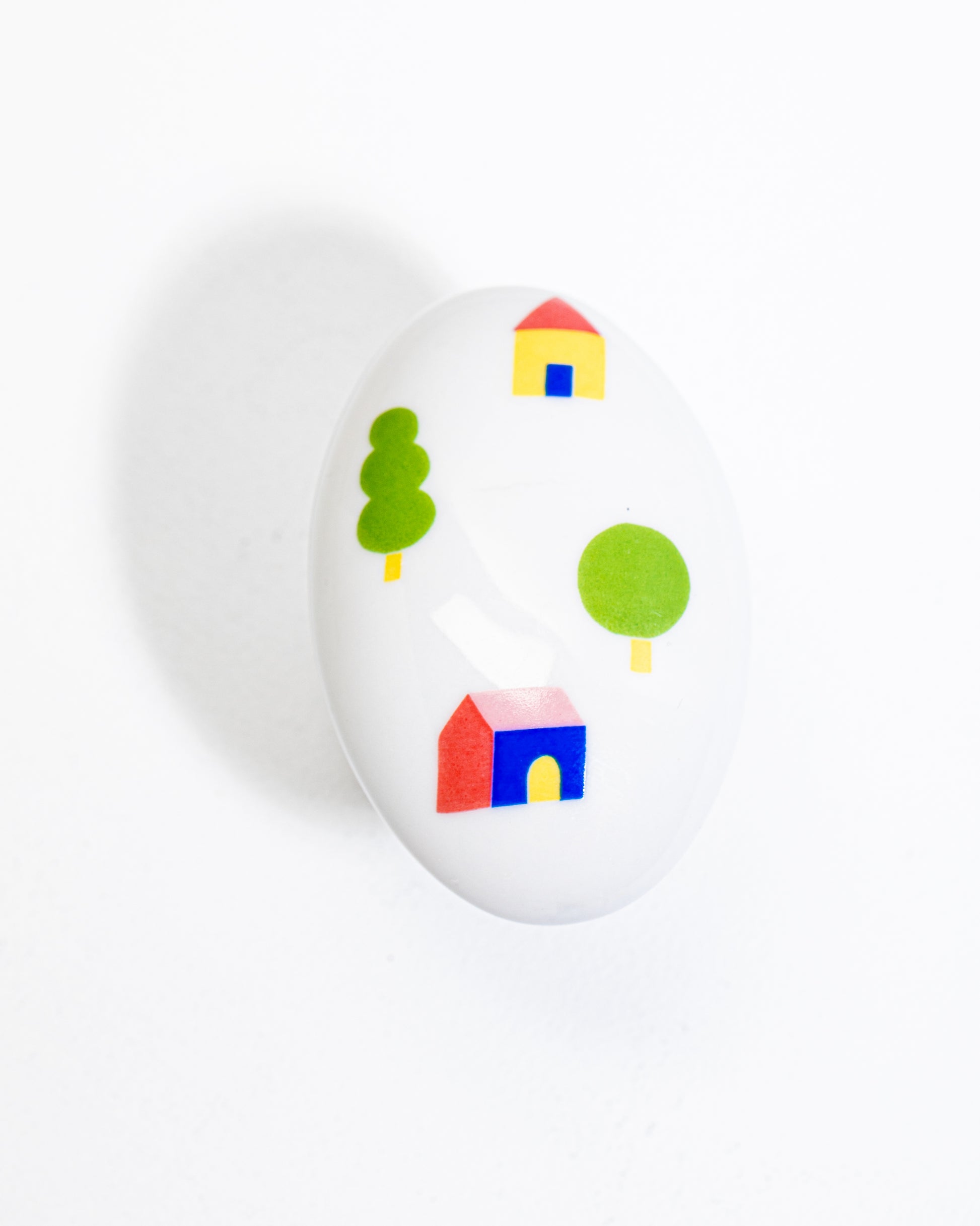 Le bouton de porte en porcelaine, à la forme ovale, imaginé en exclusivité pour le pop-up La chambre d’enfant chez Chœur Cœur.