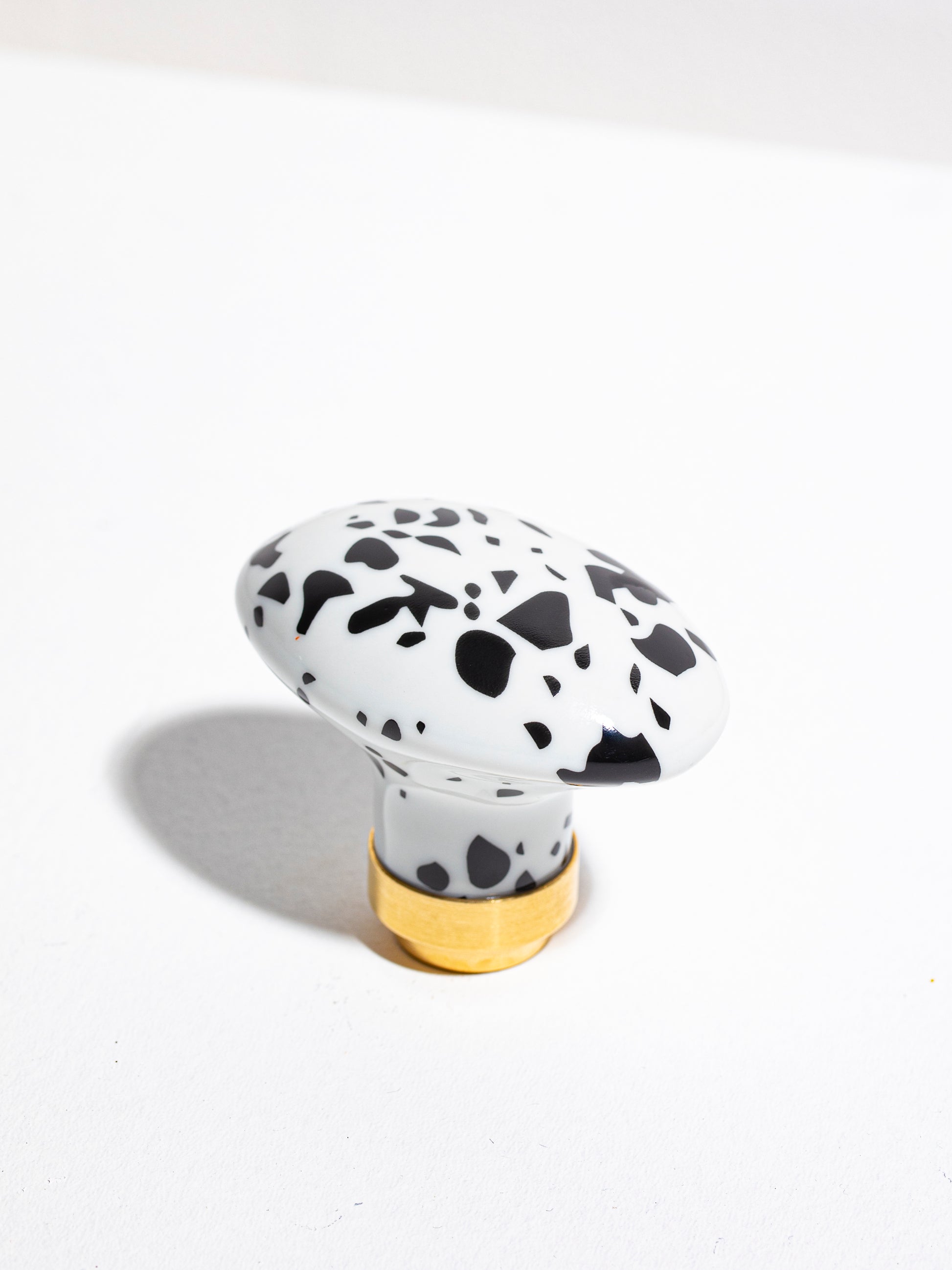 Bouton de porte en porcelaine de Limoges fabriqué et décoré à la main avec le motif intemporel Meta Averse de la maison Non Sans Raison décliné dans trois coloris, Orange, Noir et Vert.